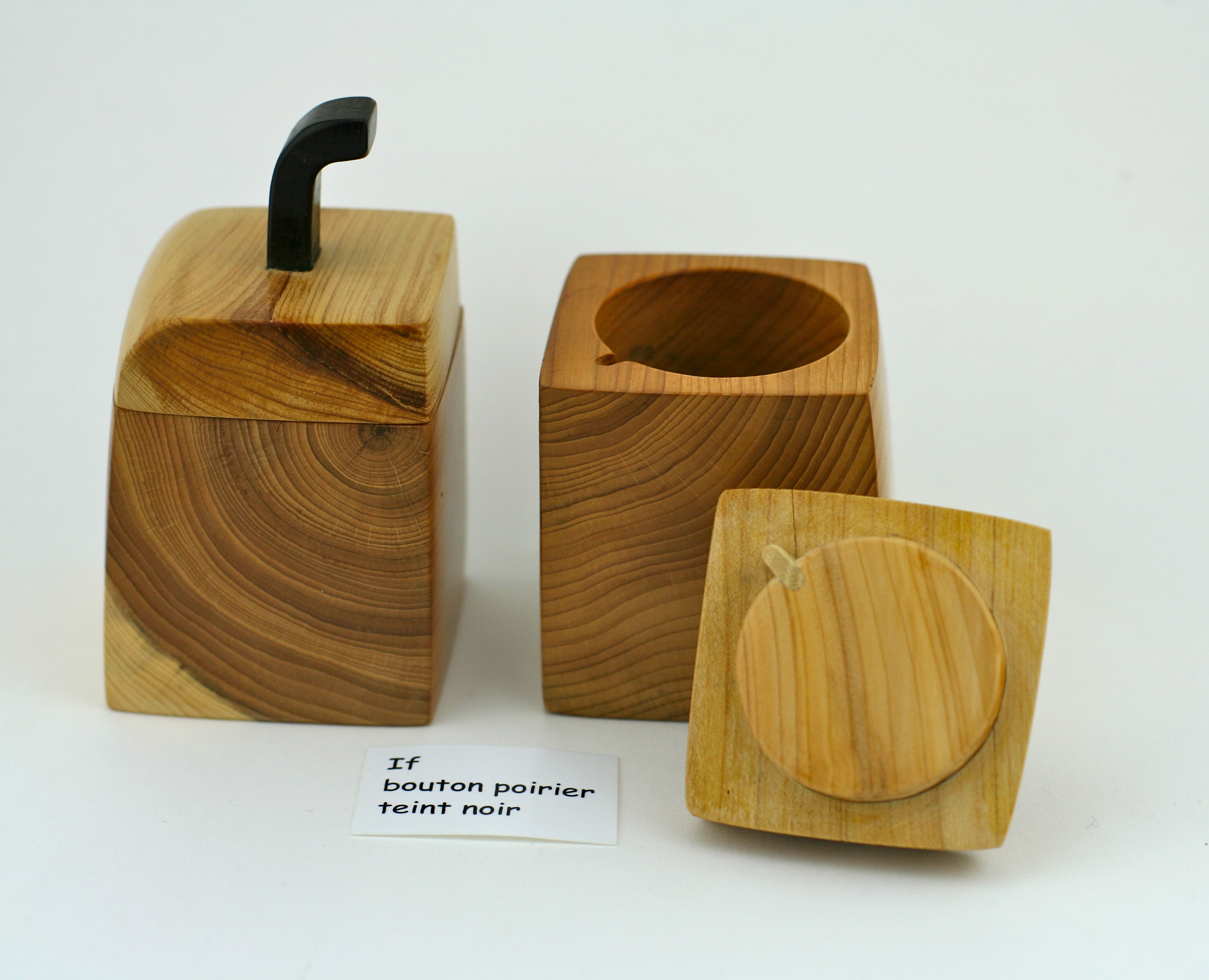 Mes boîtes sont creusés à la mèche à façonner puis sculptées (pas d’utilisation de tour à bois).